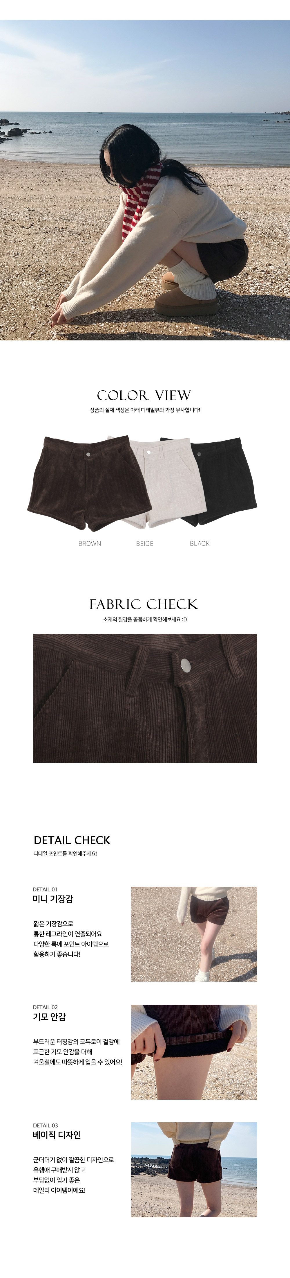 [허벅지삭제/겨울까지🌡] 포근코듀로이기모숏팬츠 (3color)
