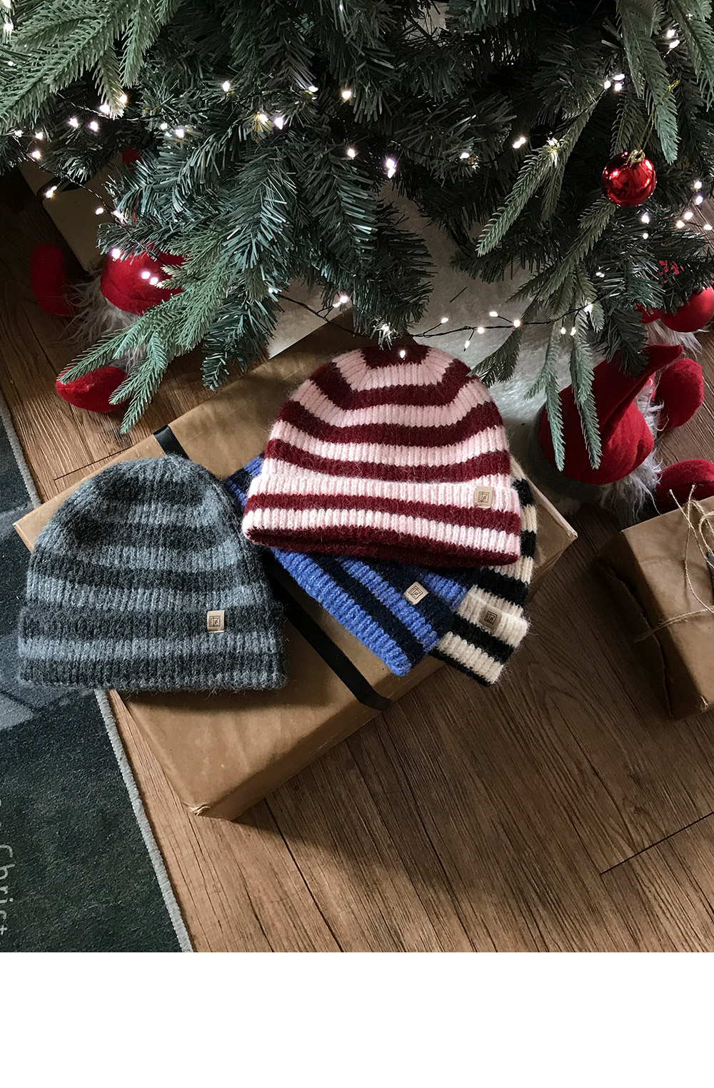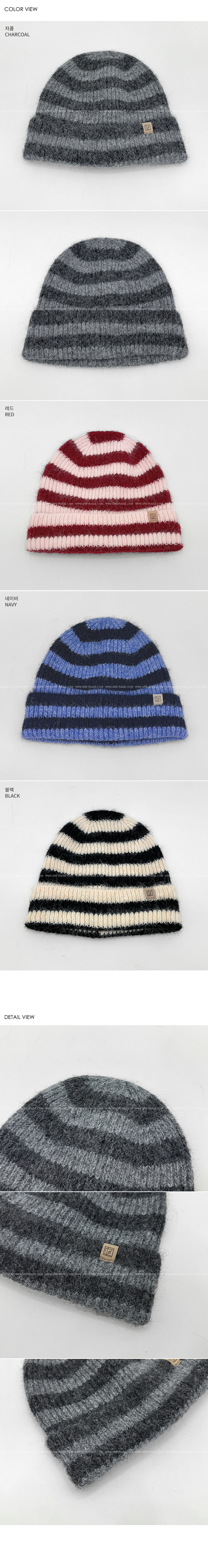 [스트라이프/폭닥💭] 울헤어리ST패치니트비니 (4color)