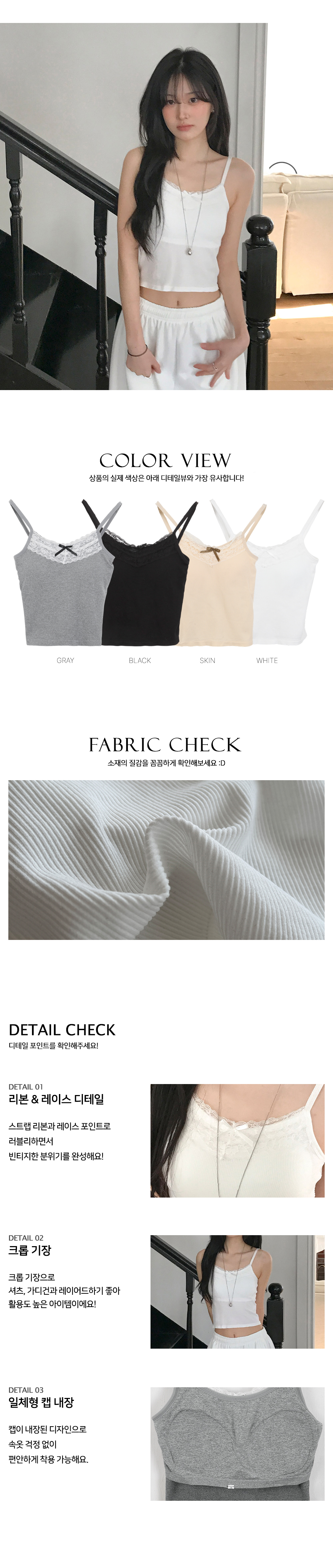 [캡내장/여리슬림핏🎀] 리본레이스크롭캡나시티 (4color)