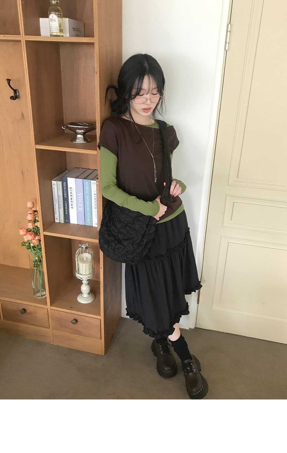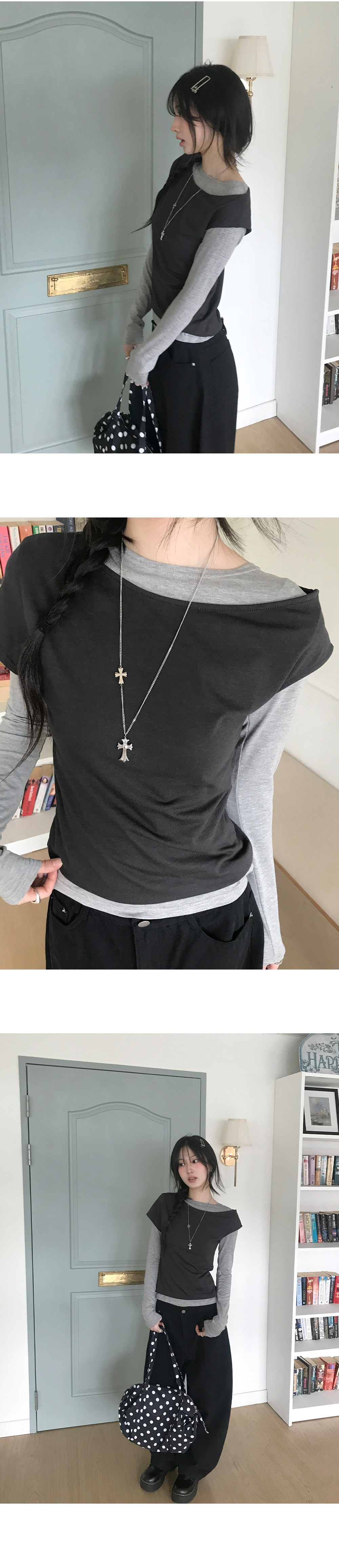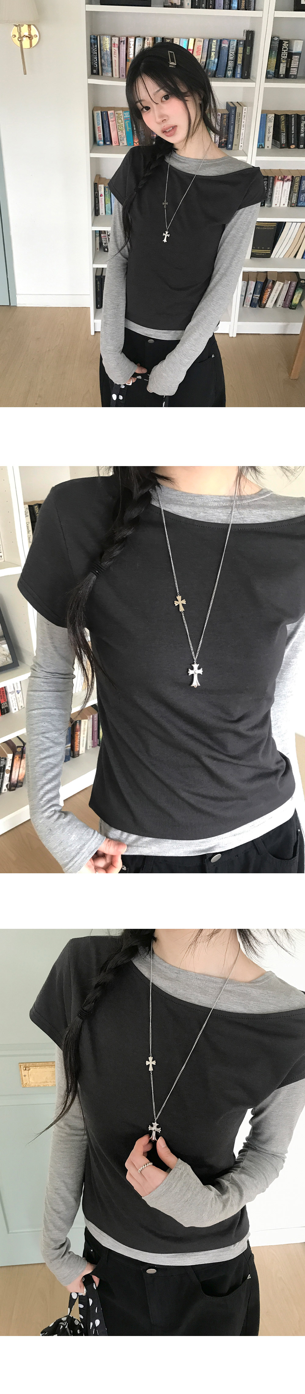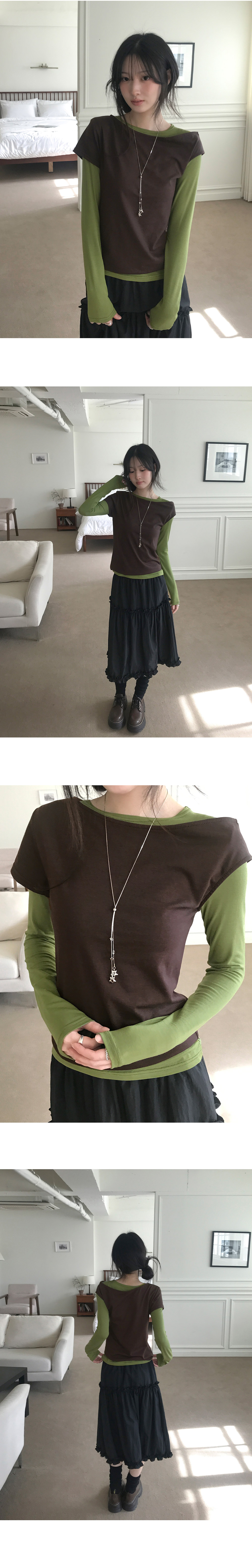 [레이어드조합💌/반소매] 탄탄핏언발레이어드반팔티 (5color)