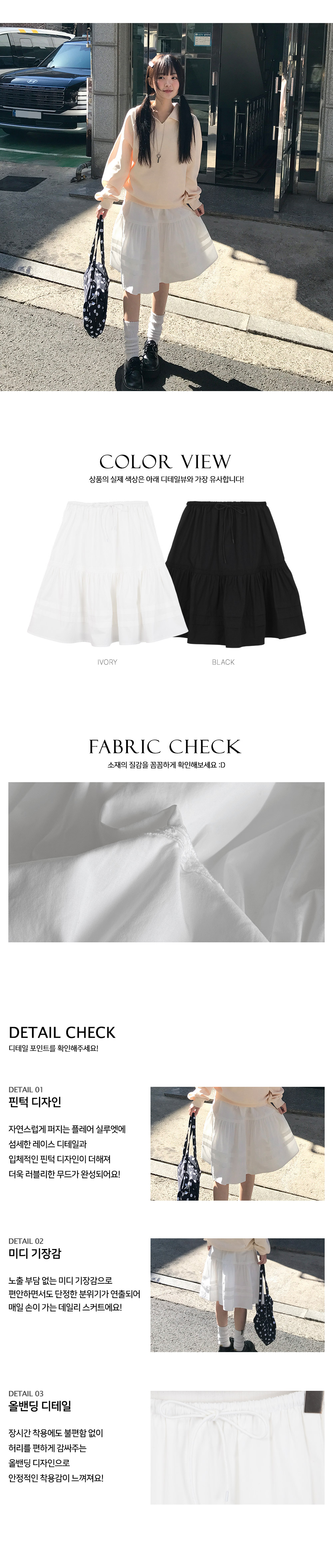 [안감o/여리여리🤍] 핀턱플레어밴딩미디스커트 (2color)