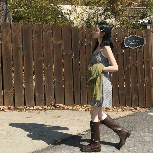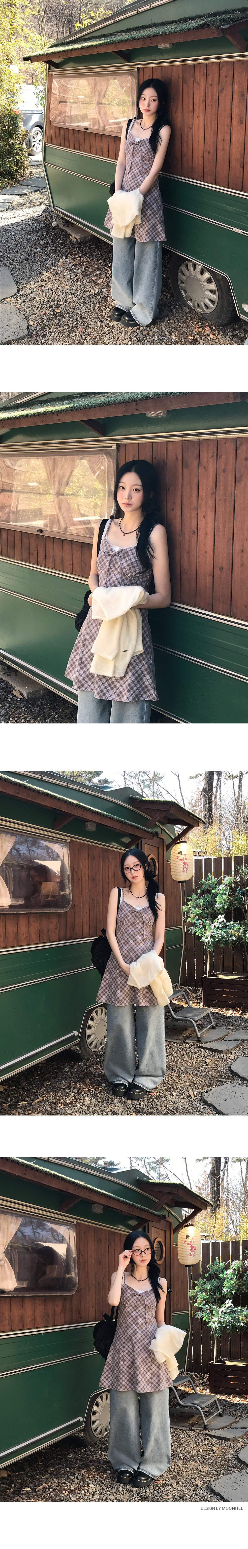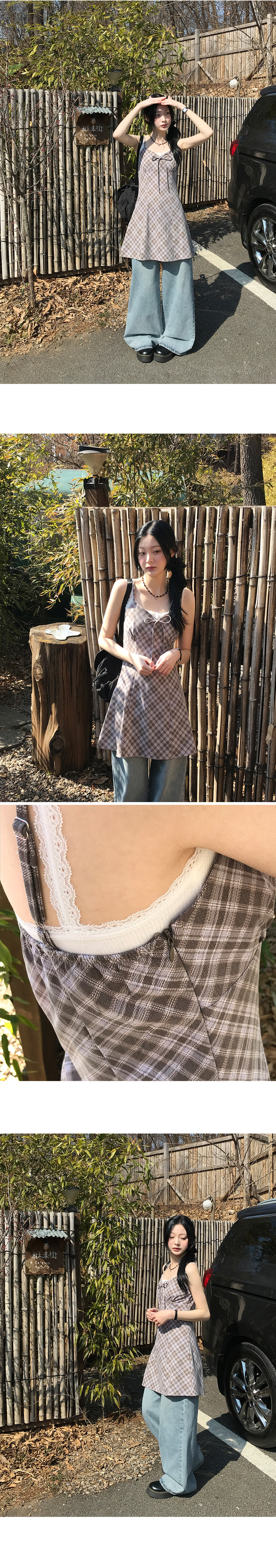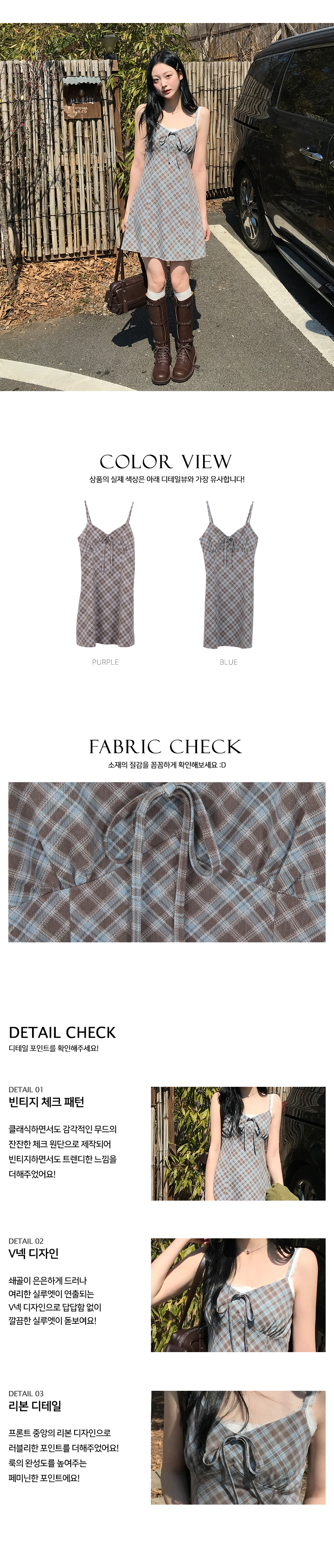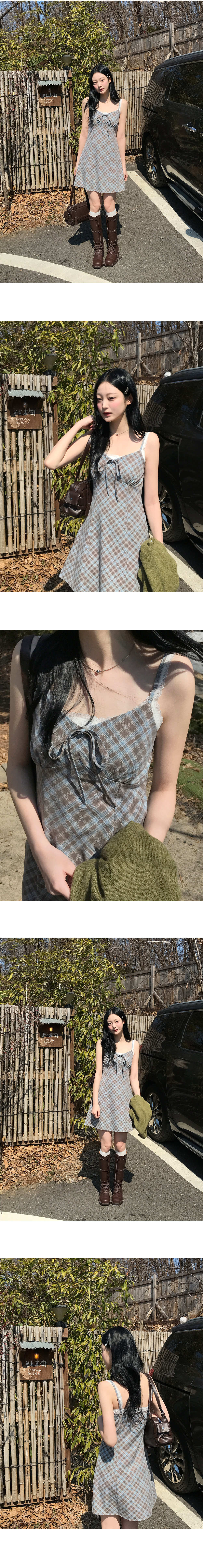 [끈조절o/브이넥] 빈티지체크리본V나시원피스 (2color)