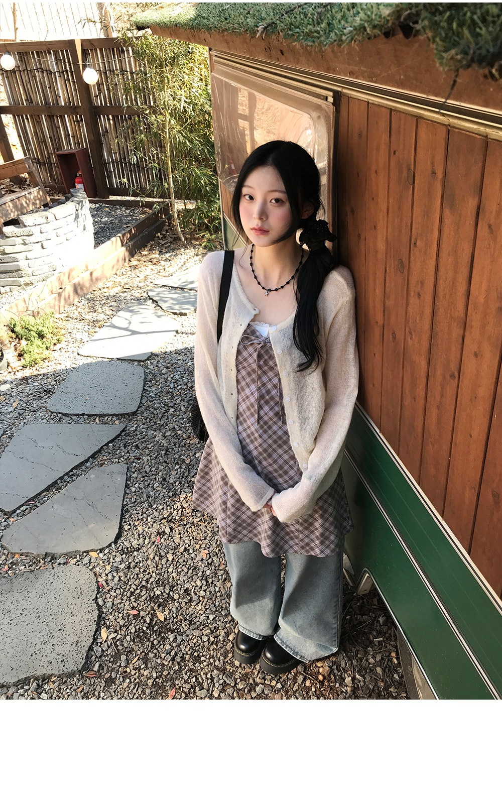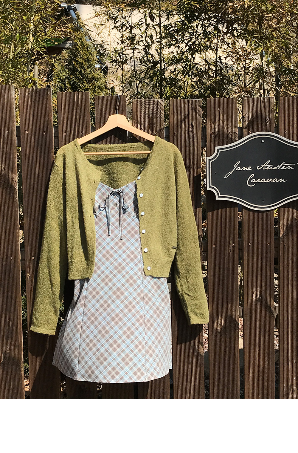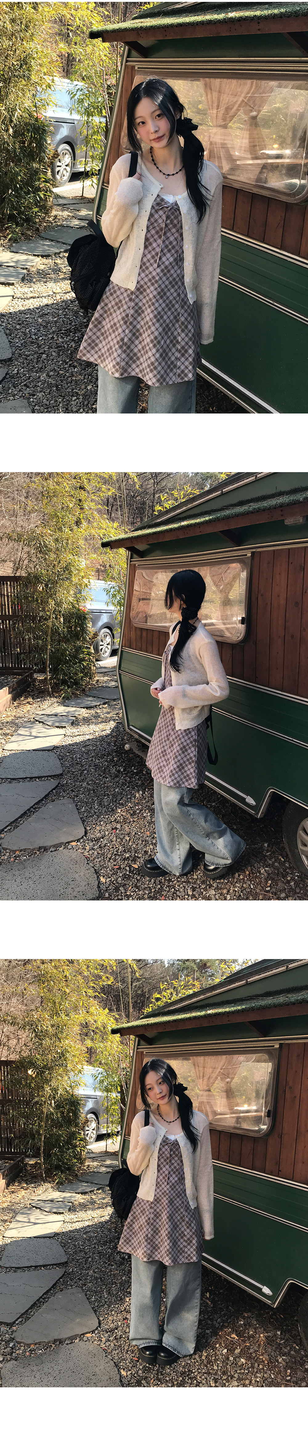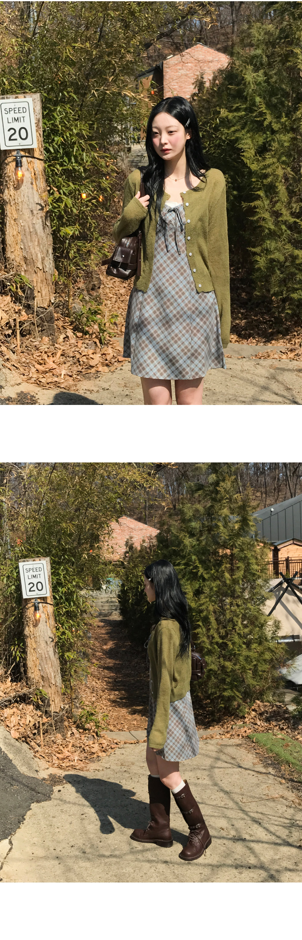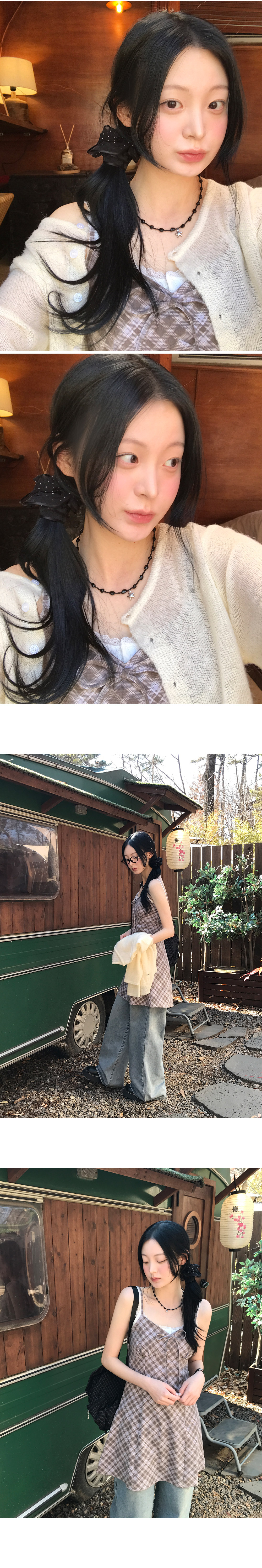[끈조절o/브이넥] 빈티지체크리본V나시원피스 (2color)