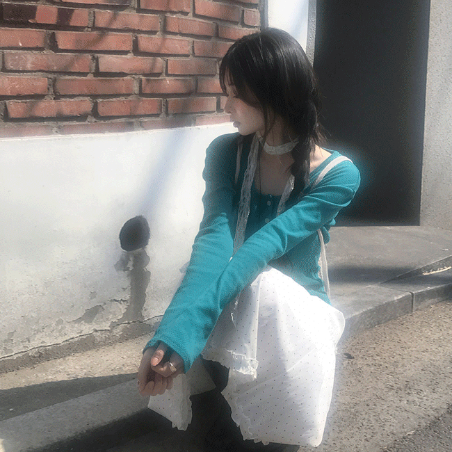 [아쿠아블루🧵/빈티지] 펀칭반버튼랍바슬림긴팔티 (4color)