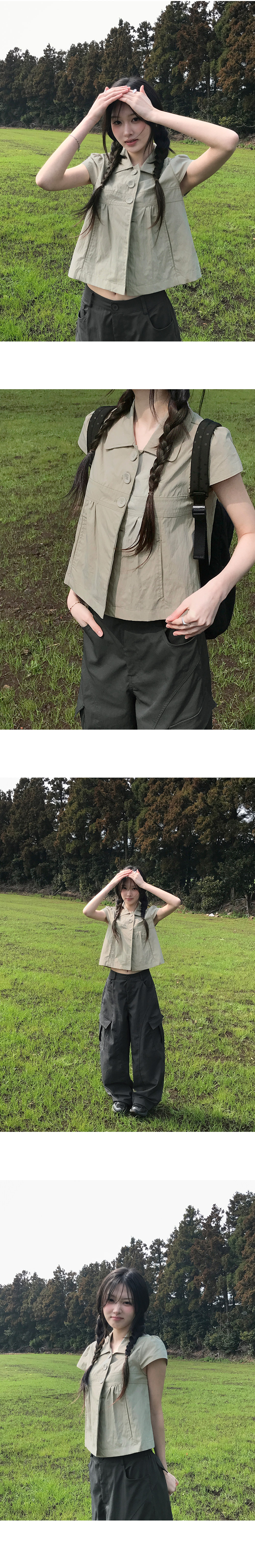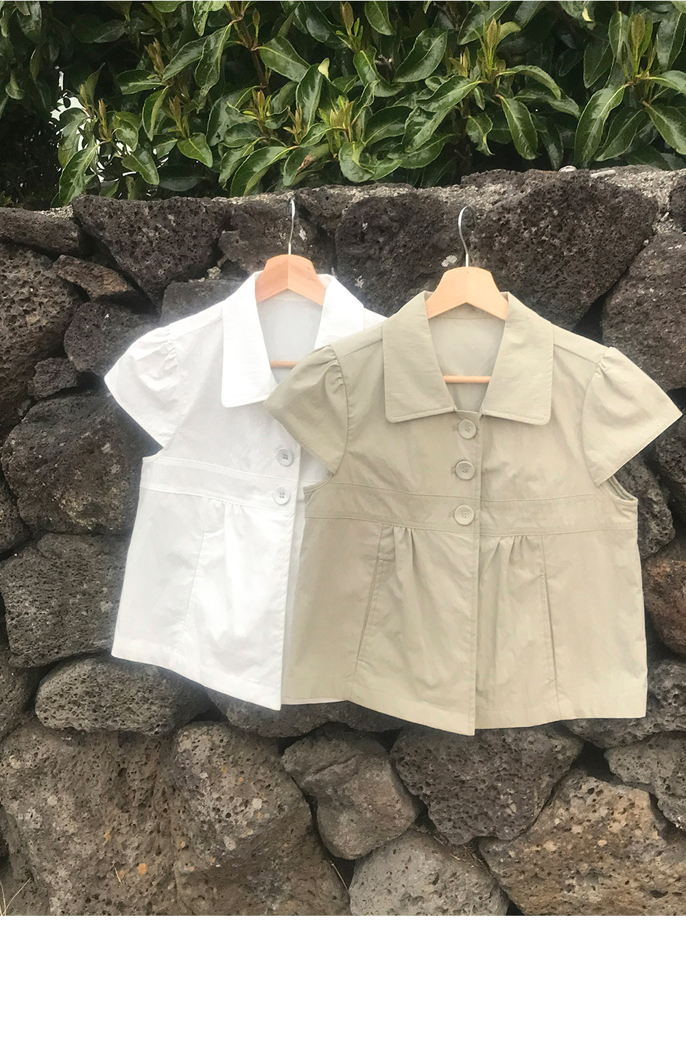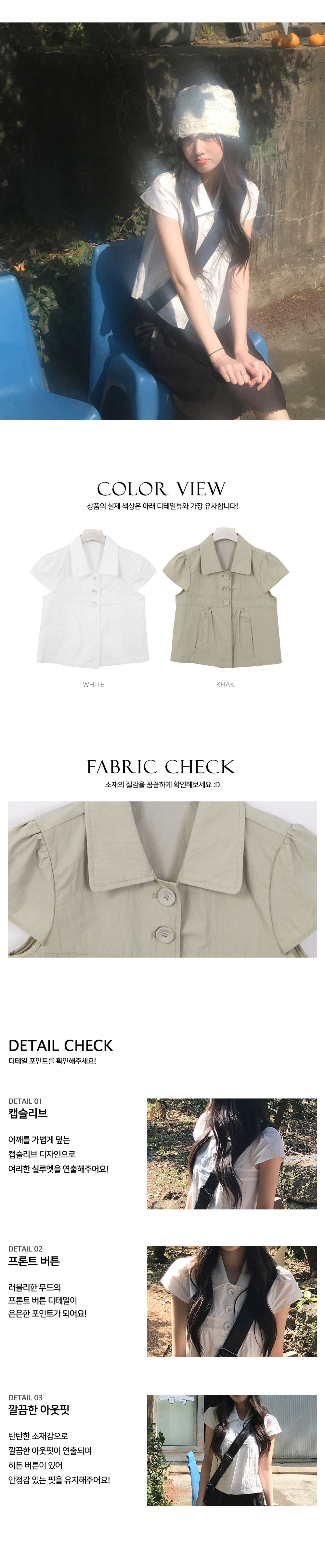 [여리핏☘/히든버튼] 캡소매반버튼카라블라우스 (2color)