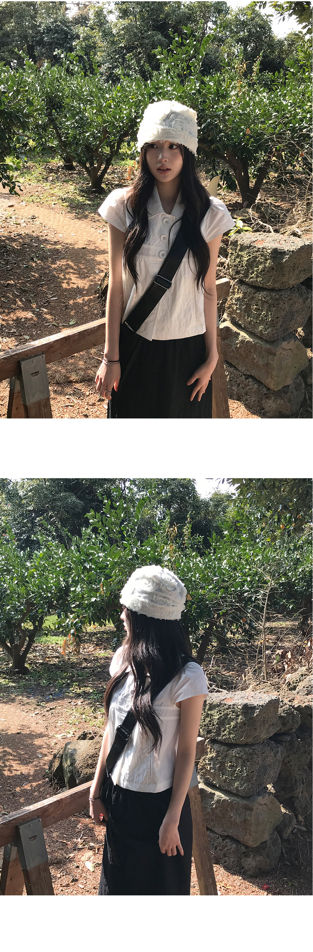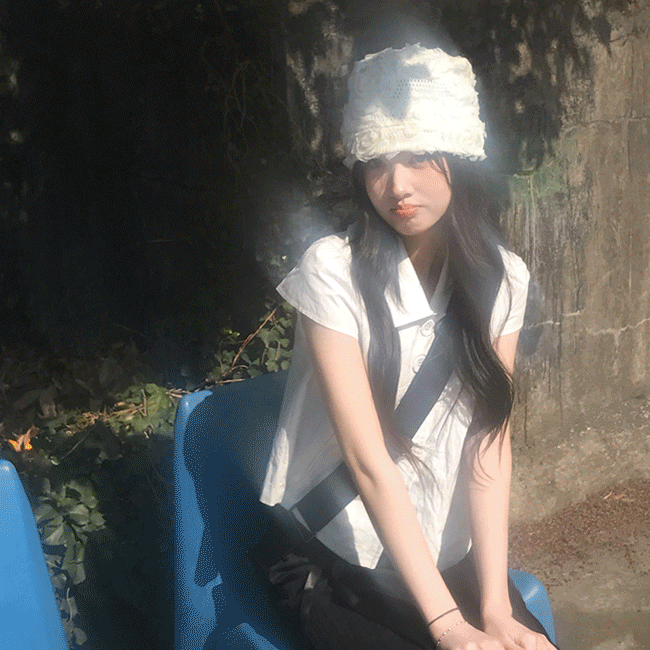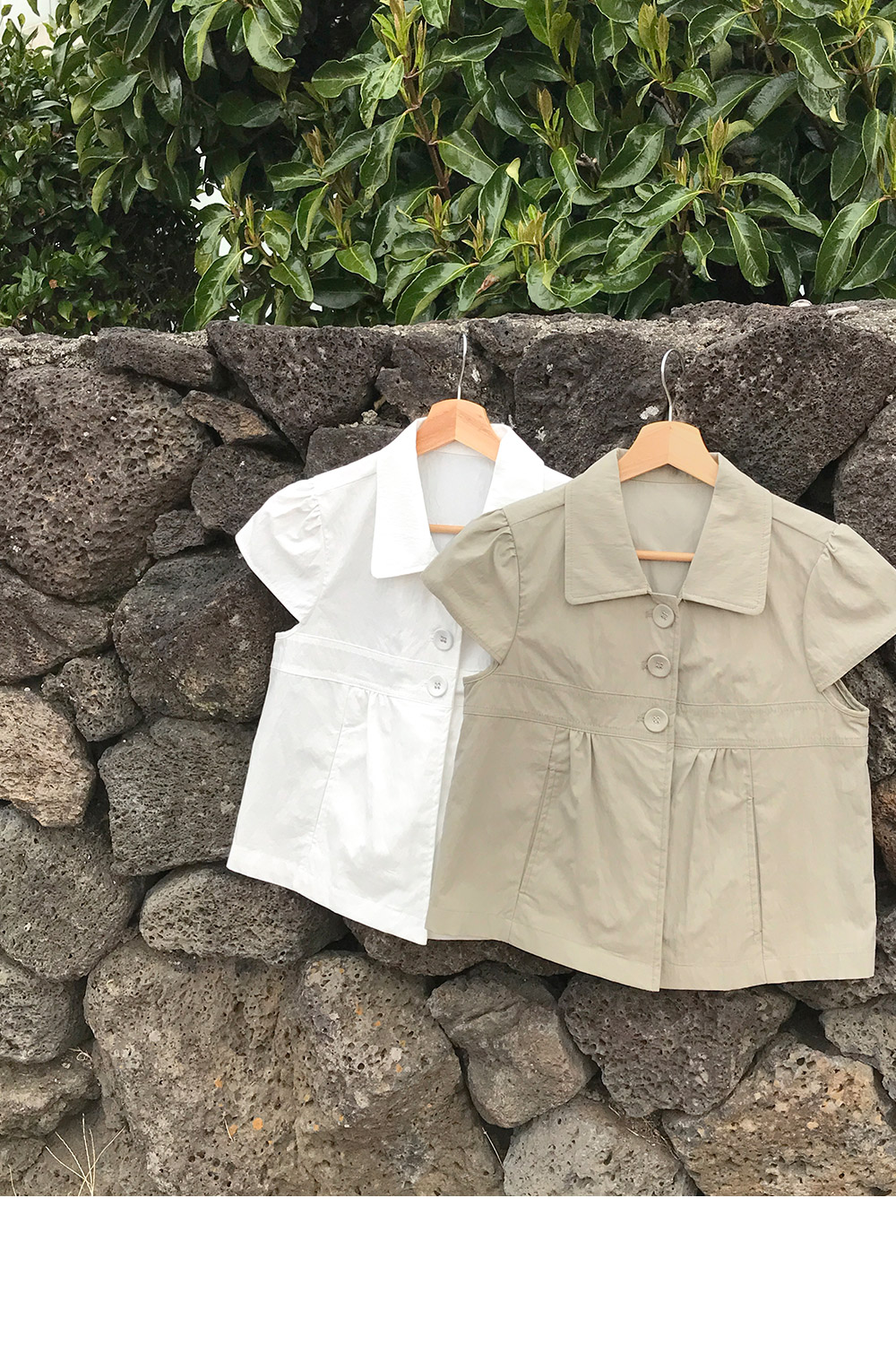 [여리핏☘/히든버튼] 캡소매반버튼카라블라우스 (2color)