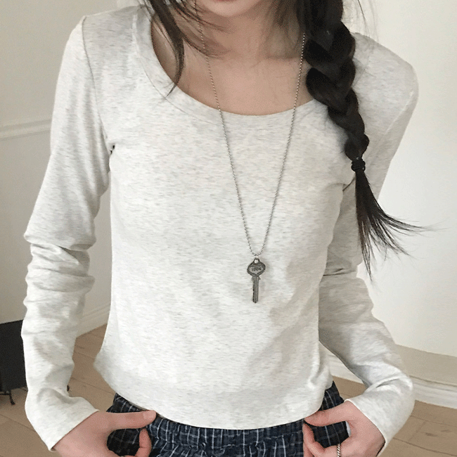 [MADE/퀄리티보장✨/손등덮는] 잔골지U넥슬림긴팔티 (4color)