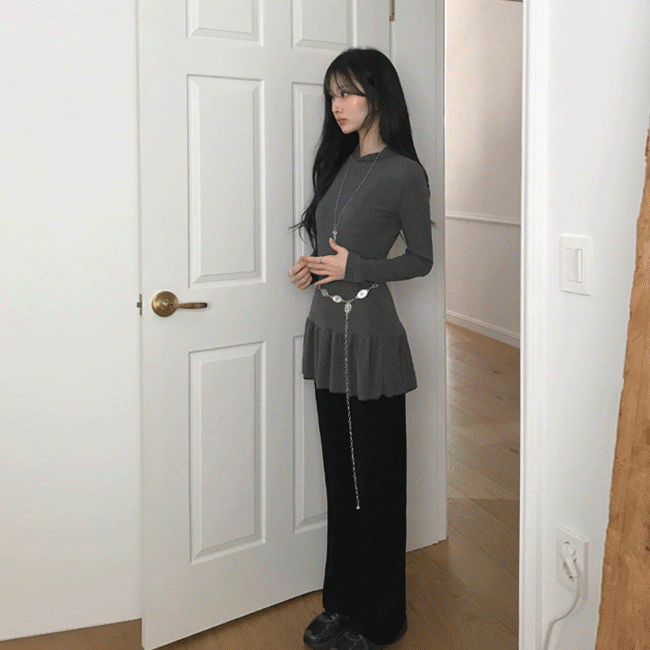 [오프숄더🐰/잘록핏] 프릴플라워언발슬림니트티 (3color)