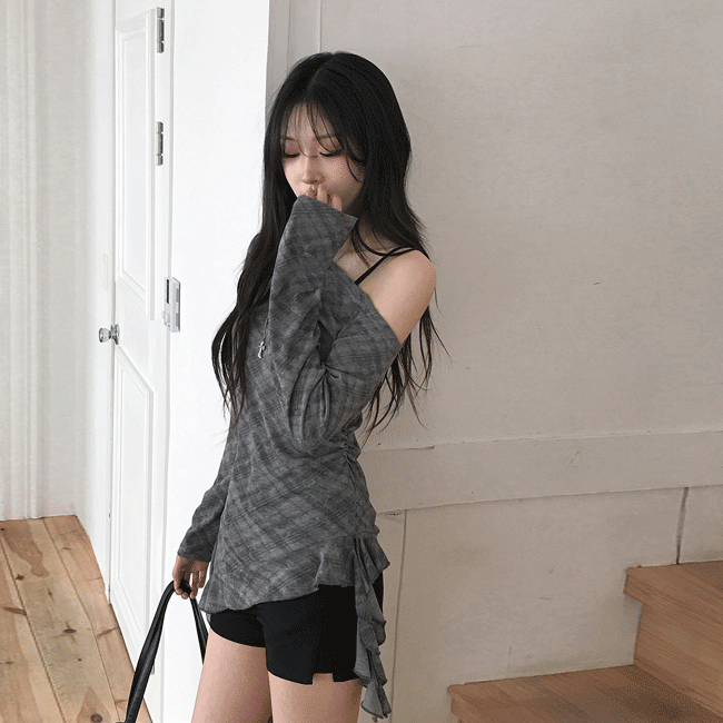 [봄신상🖤/체크패턴] 빈티지프릴언발밴딩롱스커트