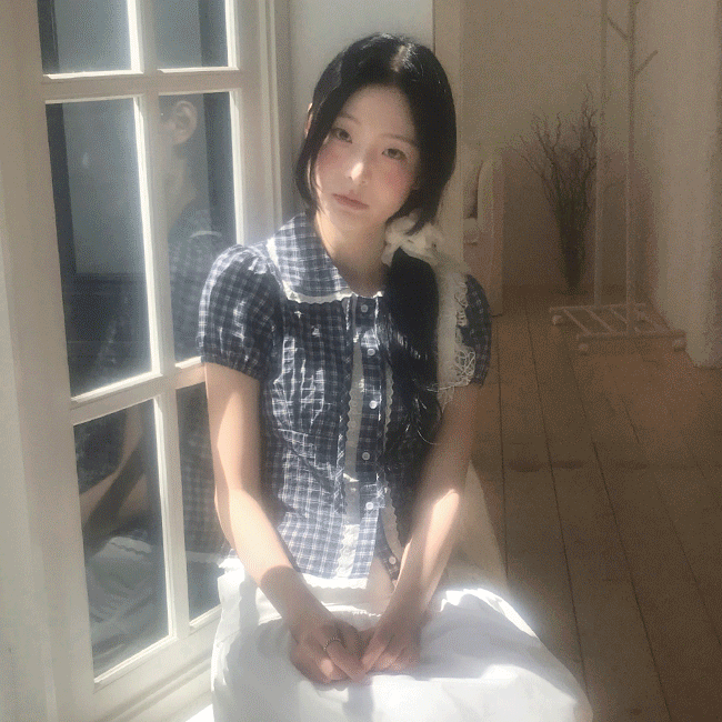 [반팔🍦/빈티지] 체크레이스카라블라우스 (2color)