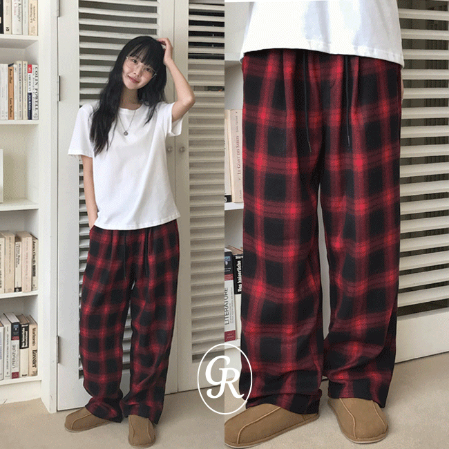 [MADE/원마일룩🖤] 타탄체크밴딩와이드팬츠 (2color)
