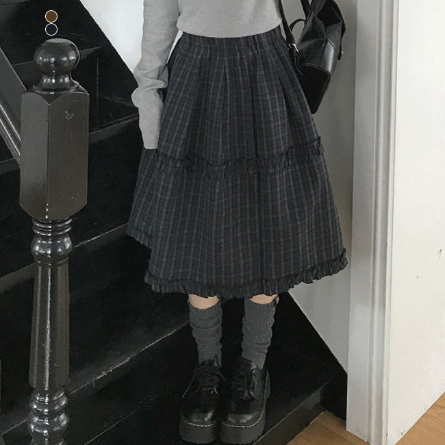 [러블리/안감o] 핀터체크프릴밴딩롱스커트 (2color)