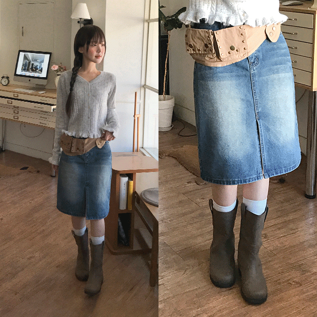 [슬릿/빈티지💙] 워싱트임H데님미디스커트 (3color)