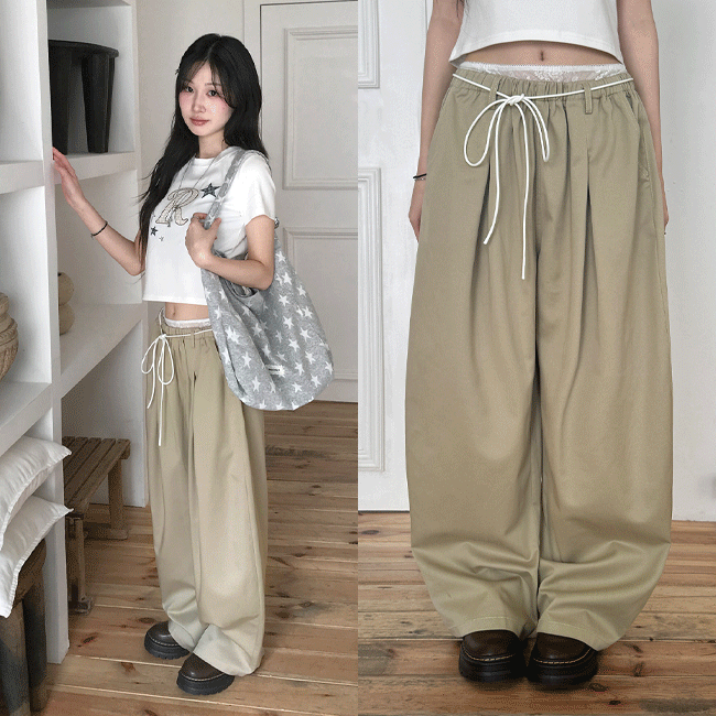 [여름까지🌳/밑단포인트!] 롤업카고뒷밴딩와이드팬츠 (2color)