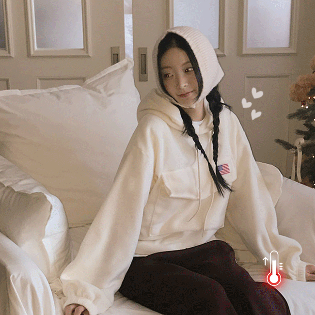 [도톰☁/밑단밴딩] 성조기포켓후리스후드티 (3color)
