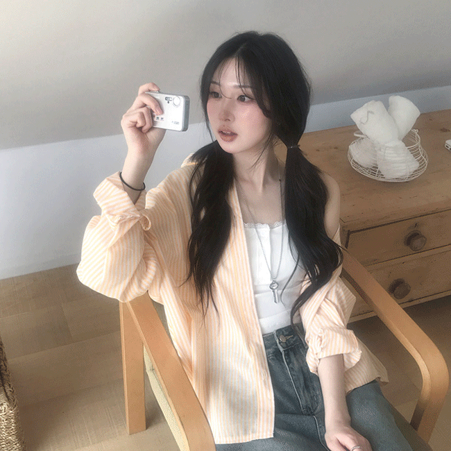 [MADE/청사과🍏/여리여리] 스프링코튼줄지루즈핏셔츠