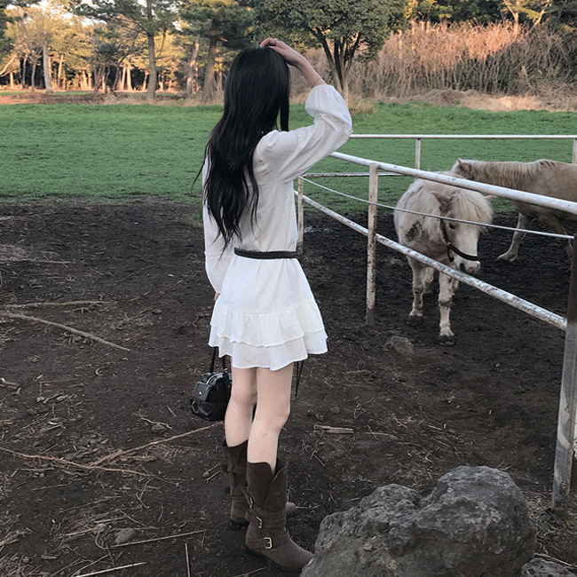 [벨트세트/코디추천🐰] 오프숄더언발레이어드원피스 (2color)
