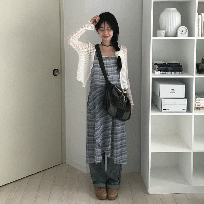[레이어드템/봄코디🌸] 히피잔체크나시롱원피스