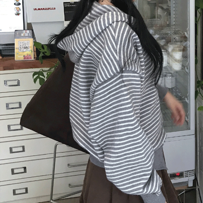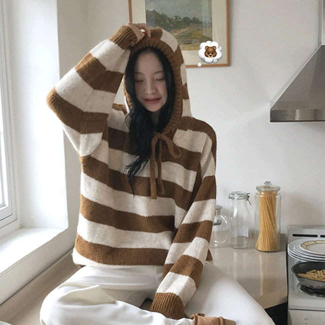 [캐주얼/스트라이프] 단가라드롭루즈후드니트티 (2color)