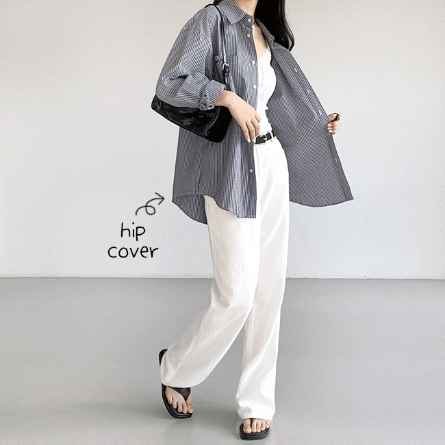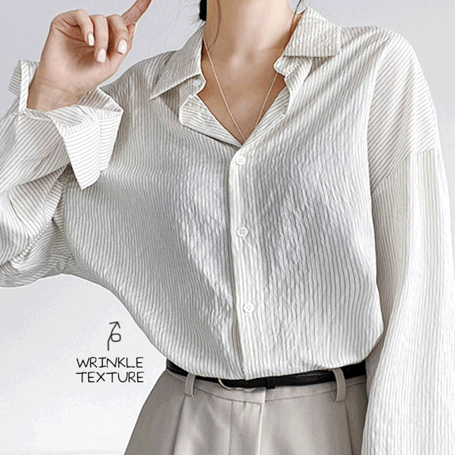 [스트라이프/힙커버] 링클줄지자수루즈핏셔츠 (2color)