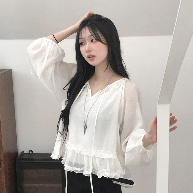 [청순🤍/데이트룩] 링클시어리본프릴블라우스