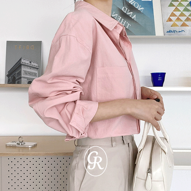 [어깨부각❌/숏] 컬러코튼돌먼히든크롭셔츠 (5color)