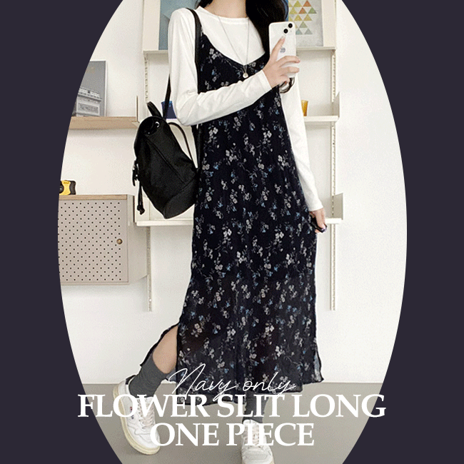 [길이조절⭕/여친룩] 플라워주름슬릿롱원피스