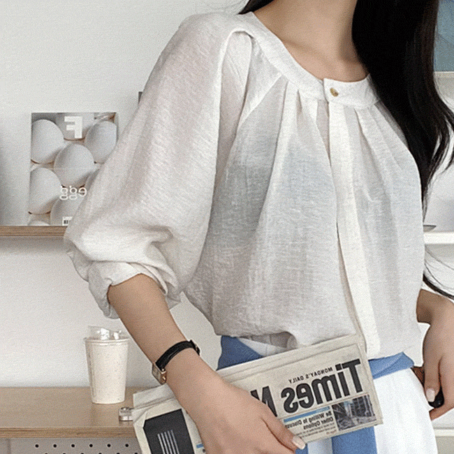 [🍂격식룩/여리핏] 링클히든자개버튼블라우스 (3color)