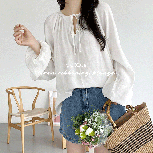 [리본포인트/여리여리] 린넨리보닝여리핏블라우스 (2color)