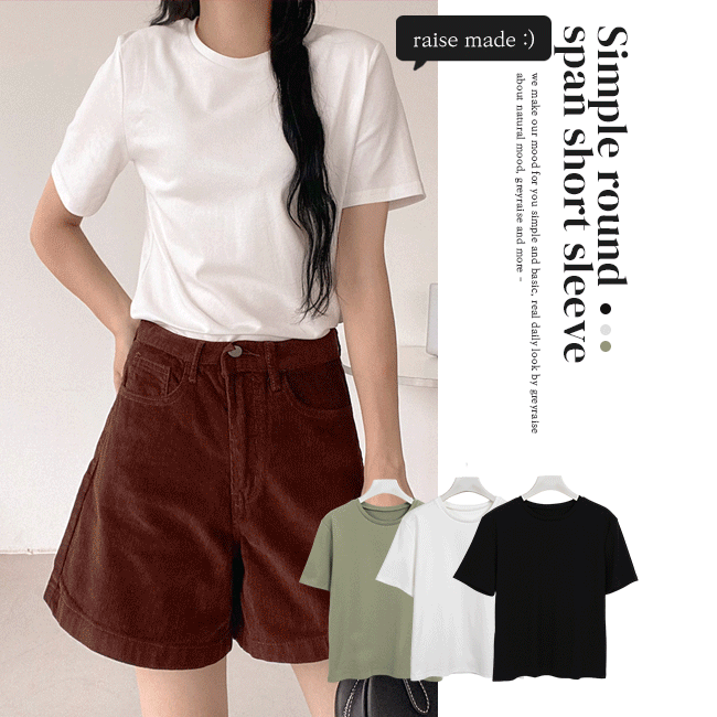 [무지/스탠다드] 심플라운드탄탄스판반팔티 (3color)