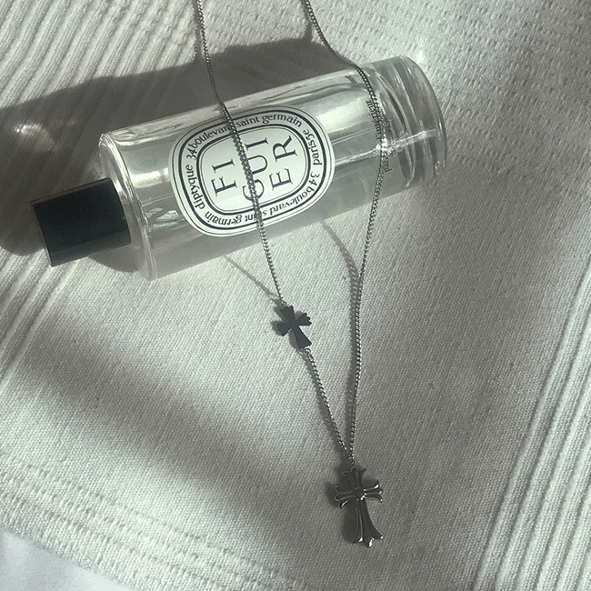 [실버🤍/십자가] 큐빅더블크로스롱네크리스