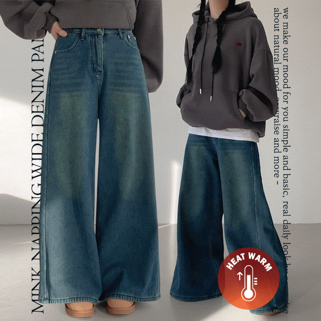 [핏보장🖤/안감기모] 밍크기모힙와이드데님팬츠 (3color)