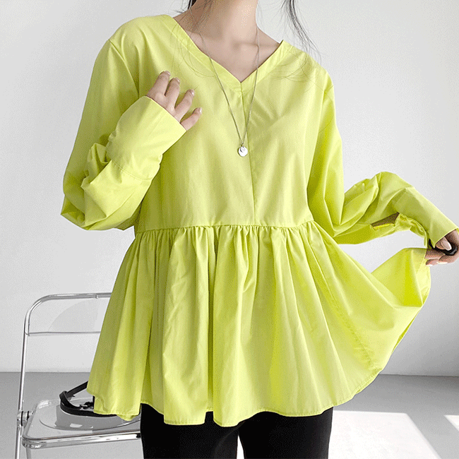 [빅사이즈/아방핏] 벌룬셔링플레어블라우스 (2color)