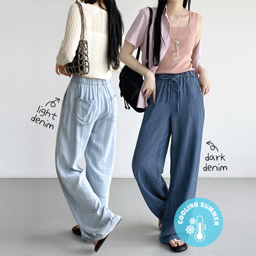 [숏&롱ver/여름원단💙] 찰랑쿨데님밴딩와이드팬츠 (3color)