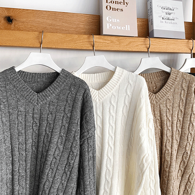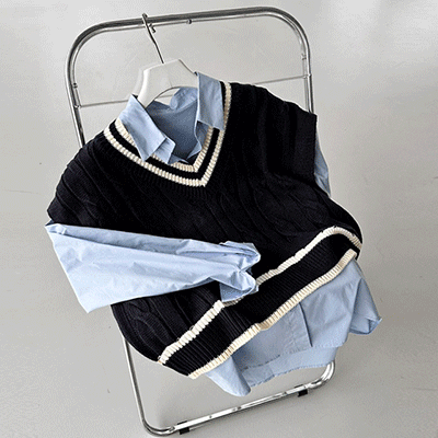 [프레피룩/레이어드] 꽈배기배색V넥니트베스트 (5color)