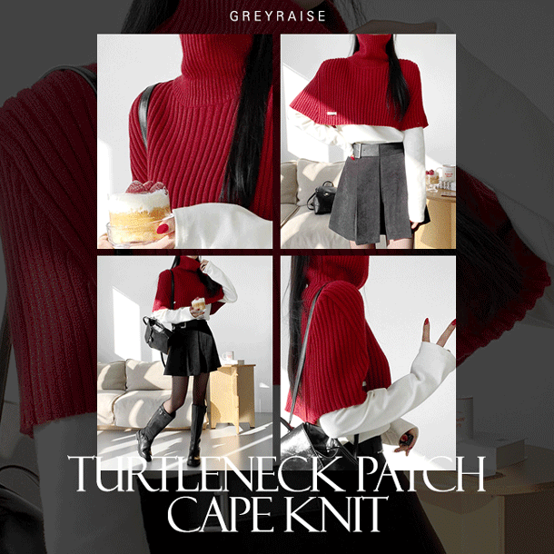 [보온템🌡/판초베스트] 터틀넥패치케이프니트 (4color)