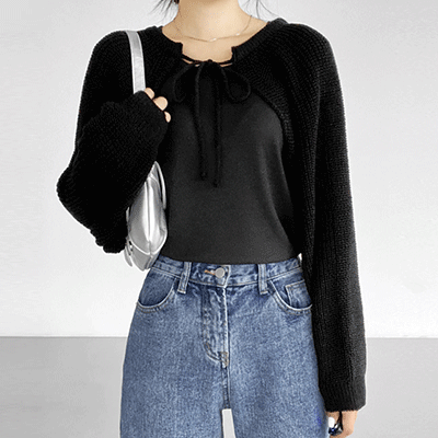 [무려7컬러!/크롭] 리보닝볼레로니트가디건 (7color)