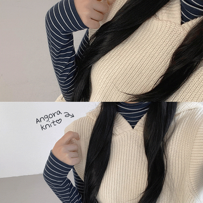 [후드조끼/크롭] 앙고라숏후드니트베스트 (3color)