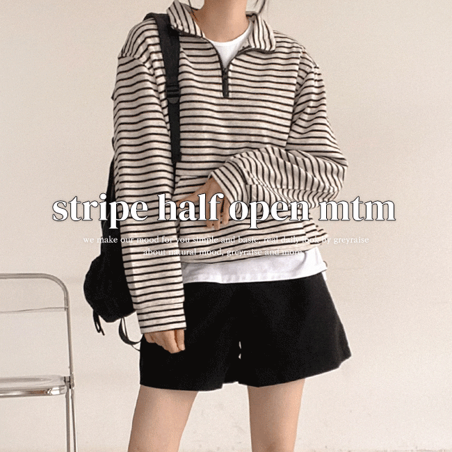 [반집업/스트라이프] 단가라포켓반오픈맨투맨티