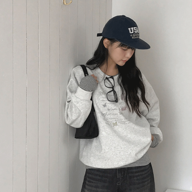 [프린팅/아방핏] 심플영문루즈맨투맨티 (2color)
