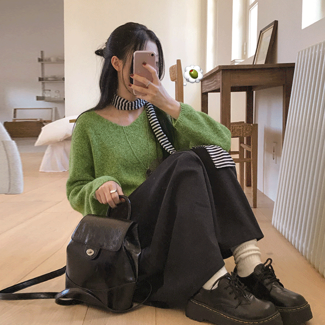 [여리핏/몽글폭닥🧸] 도톰울V넥루즈니트티 (4color)