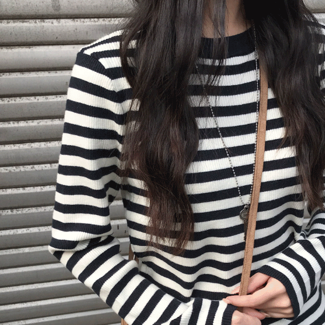 [스트라이프🖤/롱슬리브] 단가라골지R넥긴팔니트티