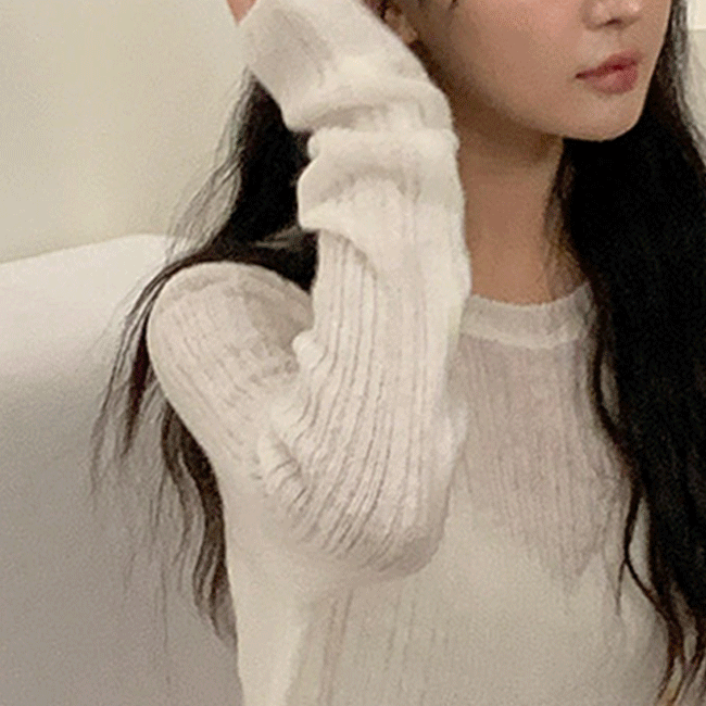 [무지/여리핏🤍] 반오픈잔골지슬림니트티 (4color)