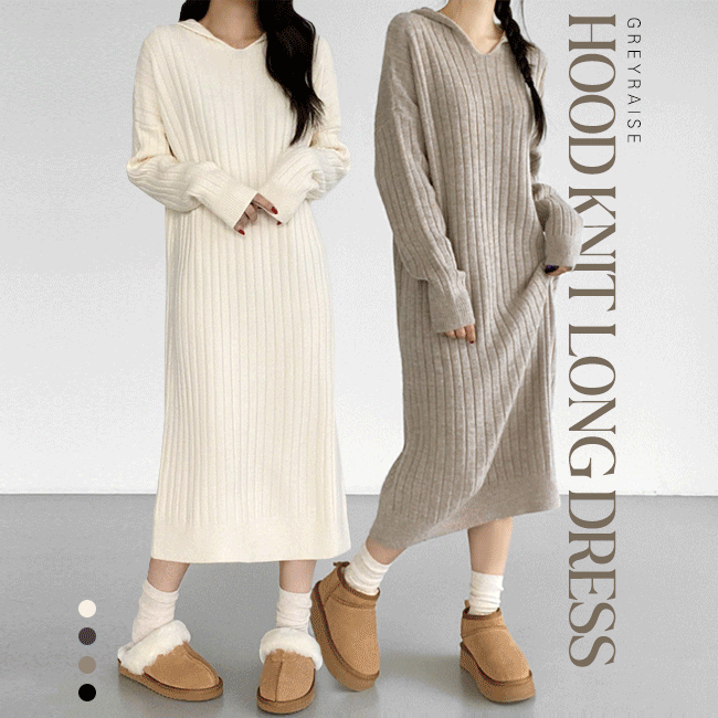 [포근/꾸안꾸] 골지후드니트미디원피스 (2color)