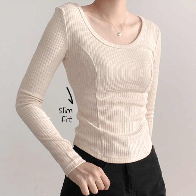 [슬림핏/쫀쫀👌] 딥U넥골지절개라운딩여리티 (3color)