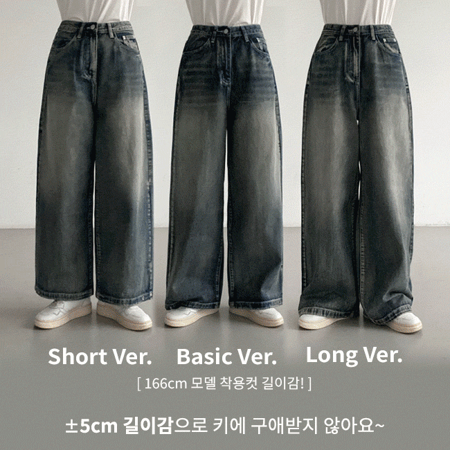 [숏&기본&롱ver/난스판] 데미지워싱힙와이드데님팬츠 (5color)