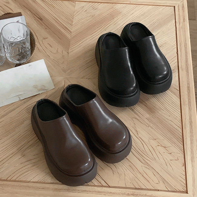 [레더🤎/키높이] 심플볼드라운드통굽슬리퍼 (2color)