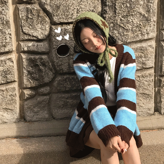 [폭닥오버핏🧸/스트라이프] ST배색V박시니트가디건
