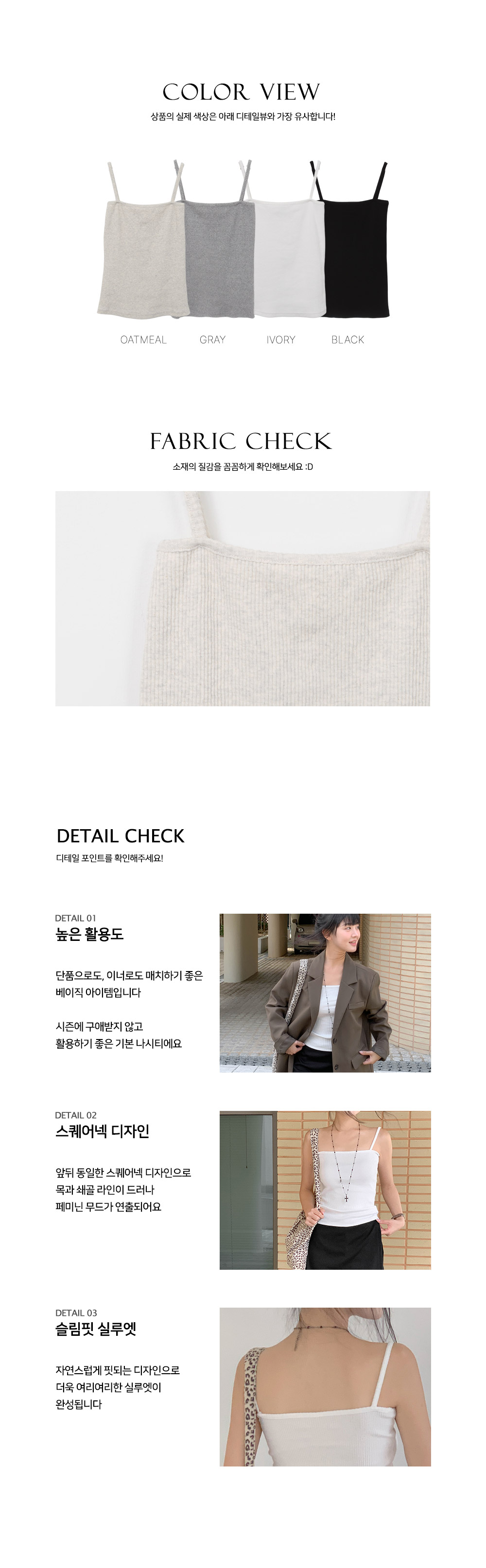 [MADE/빅사이즈/쫀쫀🧀] 골지스퀘어넥끈나시티 (4color)