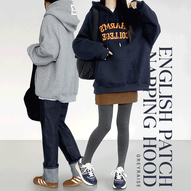 [☁기모빵빵/빅사이즈] 영문나염패치양기모후드티 (4color)